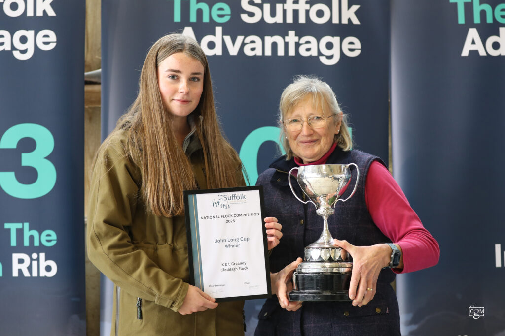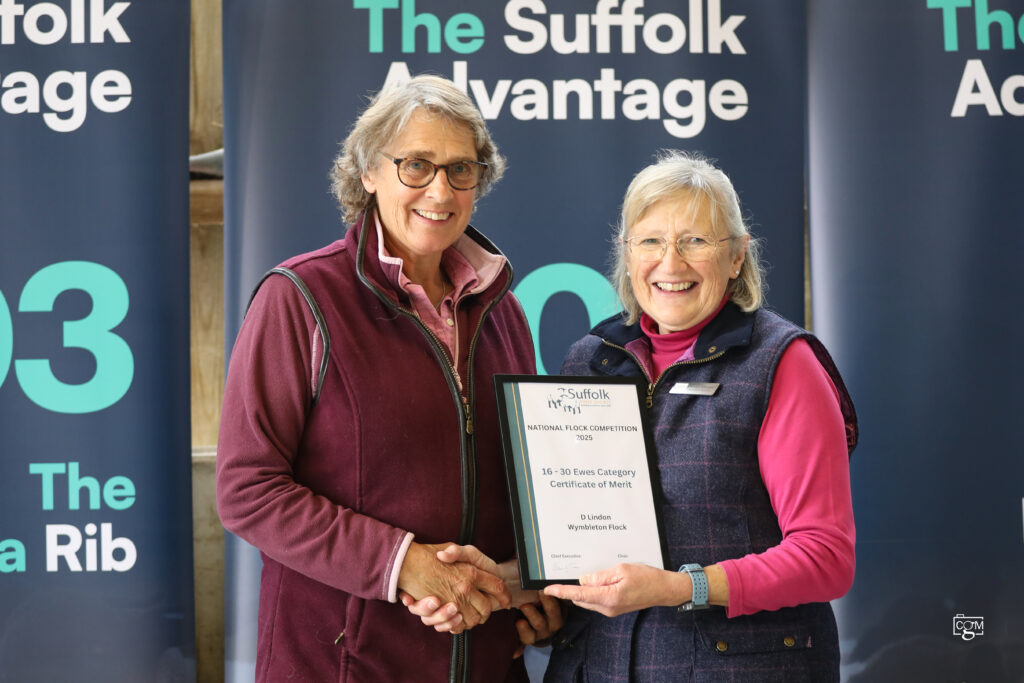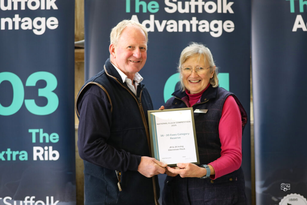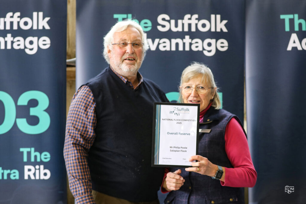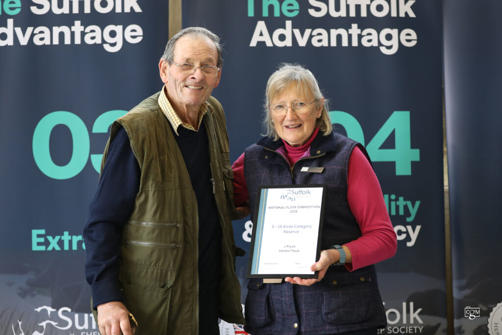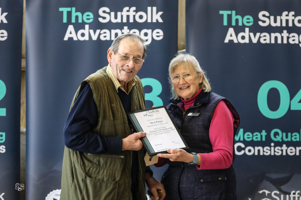 It was with great pleasure that we invited Mr. John (Jack) Pryce back to the presentation area. Andrew Evans took a moment to speak about the significant contribution Jack has made to both the breed and the Society over the many years since he first joined. In recognition of his outstanding service and dedication, Jack was presented with a certificate to mark him being awarded honorary life membership of the Suffolk Sheep Society.