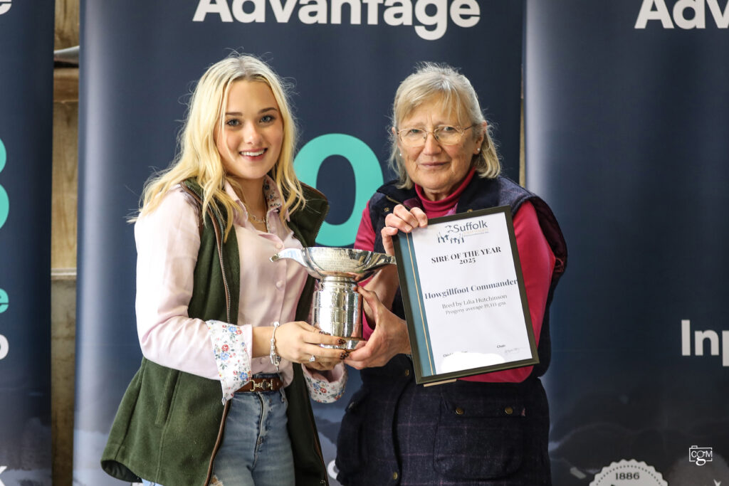 The Presentation to the Winner of the 2025 Sire of the year – Lilia Hutchinson of Howgillfoot Flock was then presented the trophy for Howgillfoot Commander. Purchased at Lanark by Mullinvale and a share retained by the breeder, his progeny averaged 19,333gns for the top three priced lambs. Read the report by clicking here