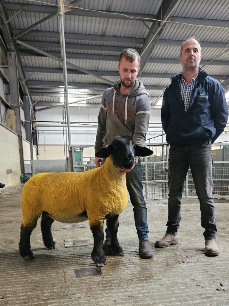 A big line-up of Suffolk females saw trade peak at 2,000gns for the second-placed ewe lamb from Ross Lawrence, Iddesleigh.