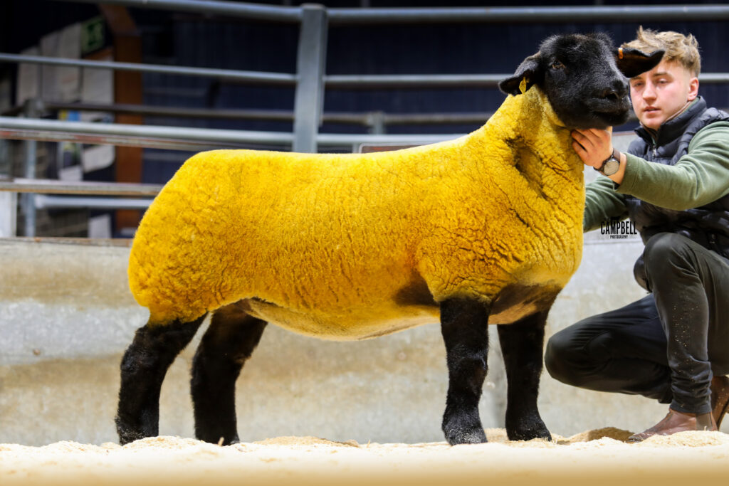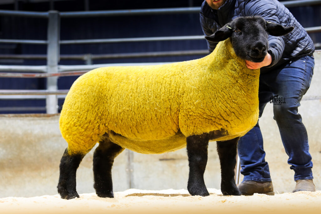 The next best gimmer at 6000gns was from James and Jenni Cannon’s Redbrae flock. A full sister to £10,000 Redbrae Poldark she was sired by Forkins Samson out of a Limestone Legacy daughter. She sold in lamb to Cairness Crafty and was purchased as a half share between Messrs Priestley, Co Down and Messrs Cockburn from Perth.
